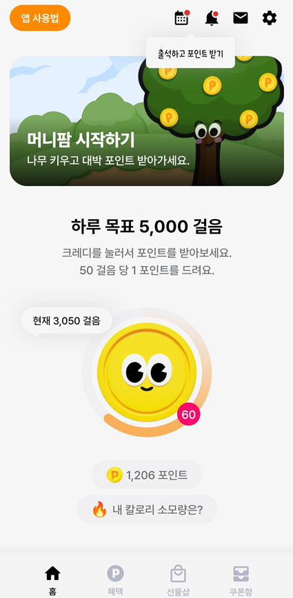 일단 만보가 아닌 5천보만 걸어도 100포인트를 쌓을 수 있는 장점이있어요 ㅎㅎ