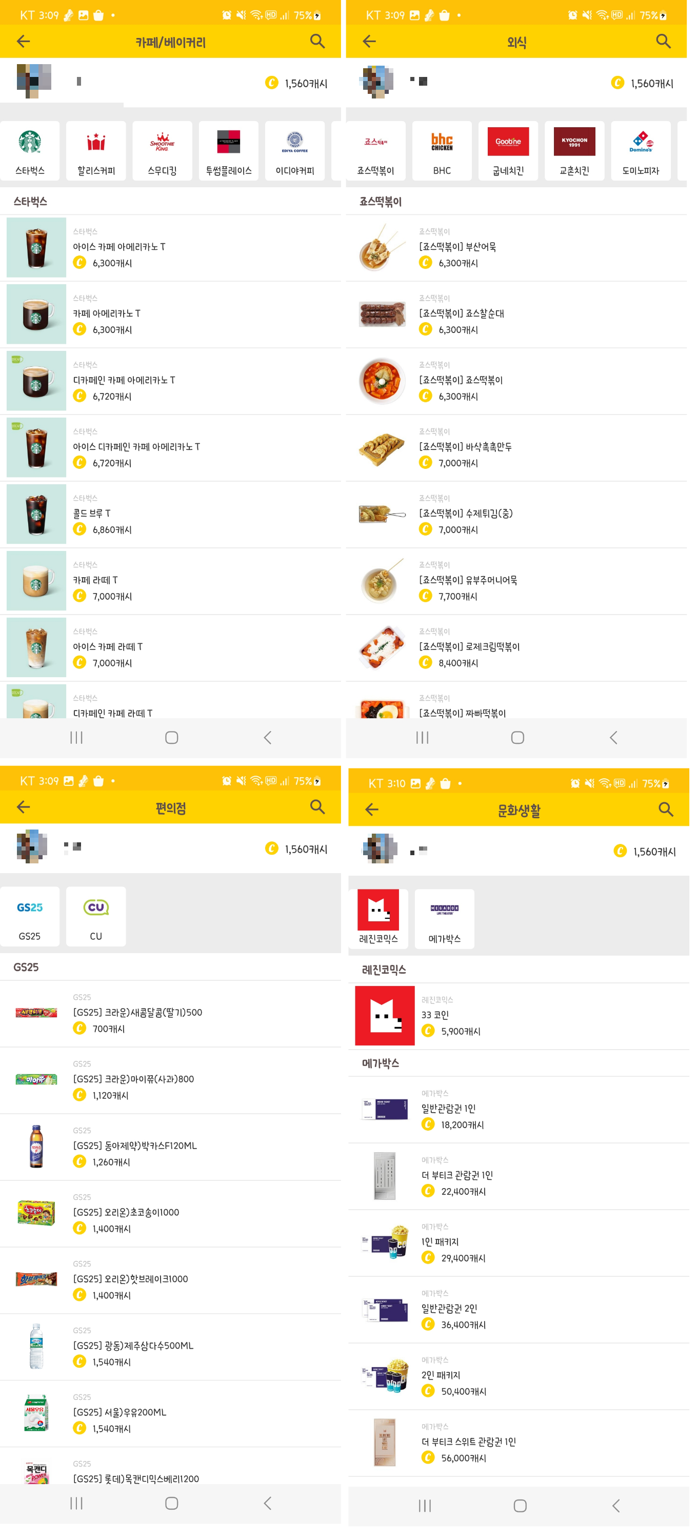 캐시가 적을 땐 편의점도, 문화생활도 캐시로 결제할 수 있어요!