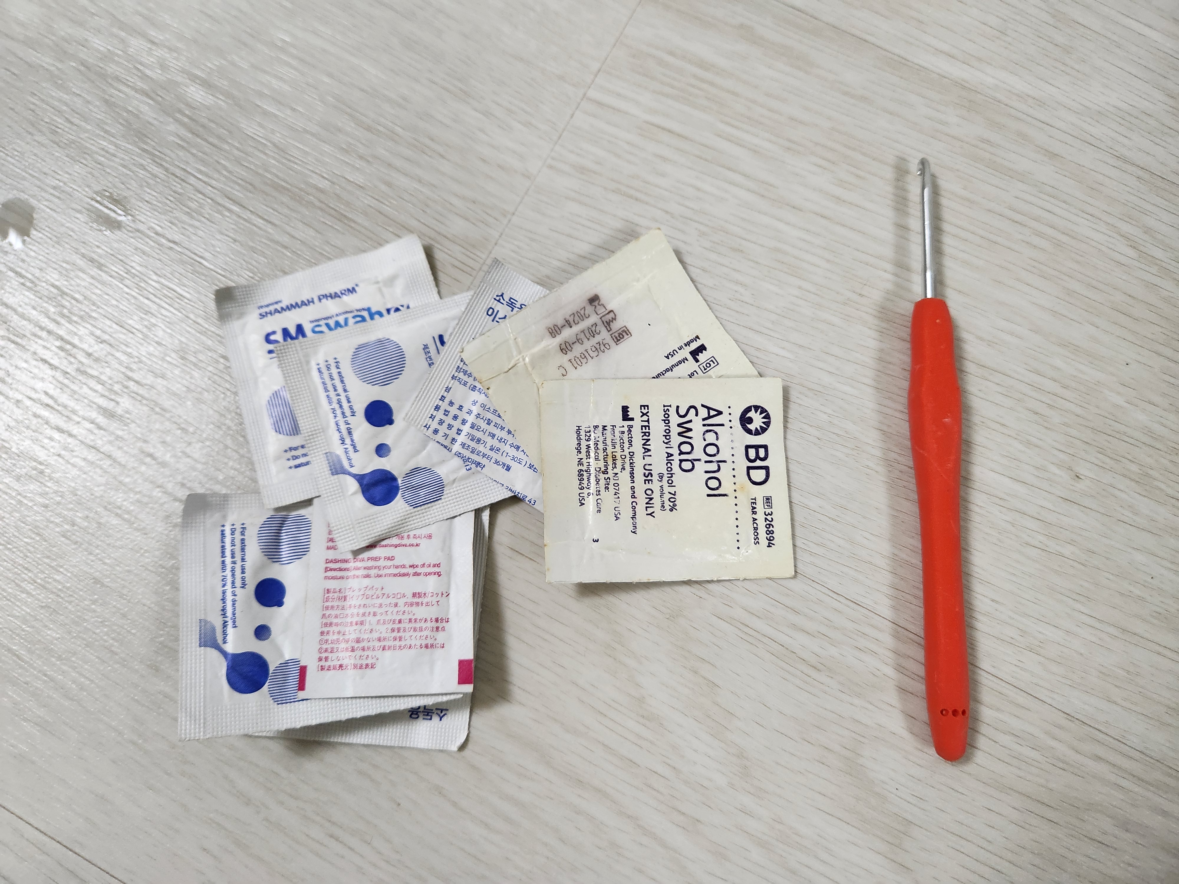 파우치속에 있던 알콜스왑들과 코바늘까지 찾았다